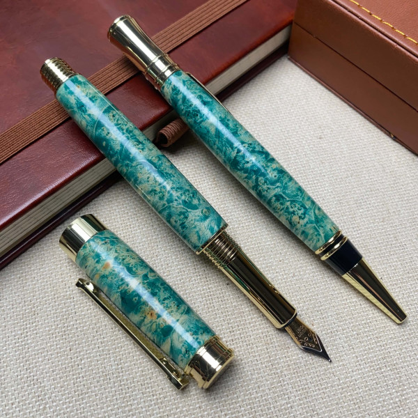 Комплект ручок: кулькова та перова ручки виготовлені із деревини капового клена (модифікованого).