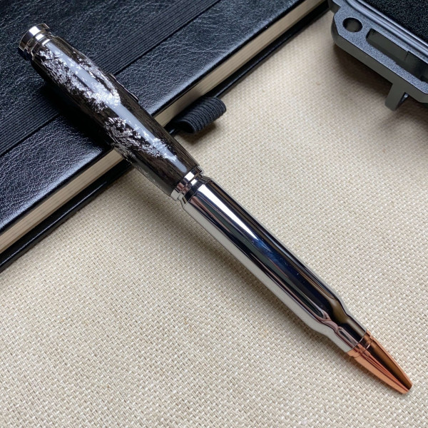 Унікальна кулькова ручка ручної роботи виготовлена із деревини мореного дуба та срібної поталі.