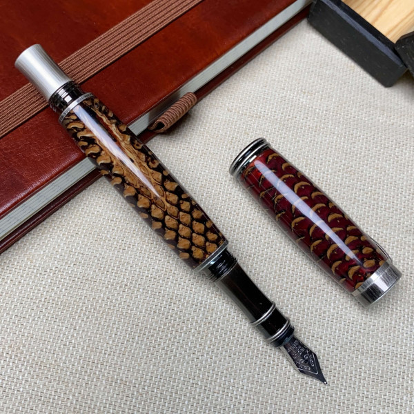 Унікальна перова ручка виготовлена із справжньої шишки і епоксидної смоли.