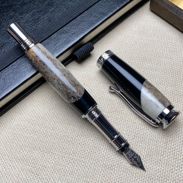 Унікальна перова ручка виготовлена із справжнього оленячого рогу і чорного акрилу.