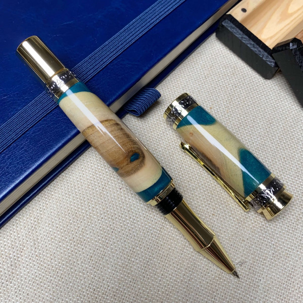 Унікальна ручка-ролер виготовлена із дерева горіха та епоксидної смоли.
